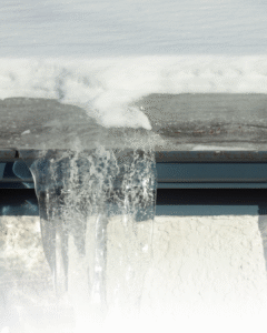 Ice damming happens when melting ice refreezes along the edge of your roof, forming a barrier that prevents proper drainage. Water then backs up under shingles and into the roofing system.